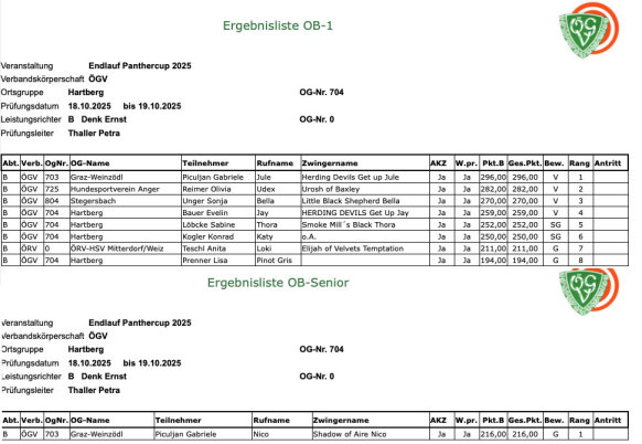 4. Panthercup Obedience beim ÖGV Hartberg am 18.10.2025