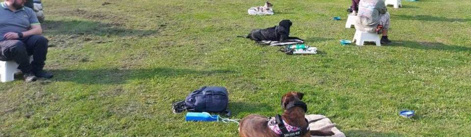 Spielen der Hunde miteinander gelegt (Sozialisierung der Welpen). Gewöhnung an verschiedene optische und akustische Reize. Der Hund muss die gelernten Kommandos noch nicht perfekt beherrschen.